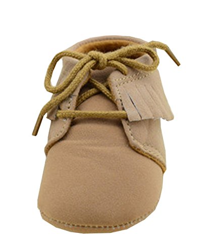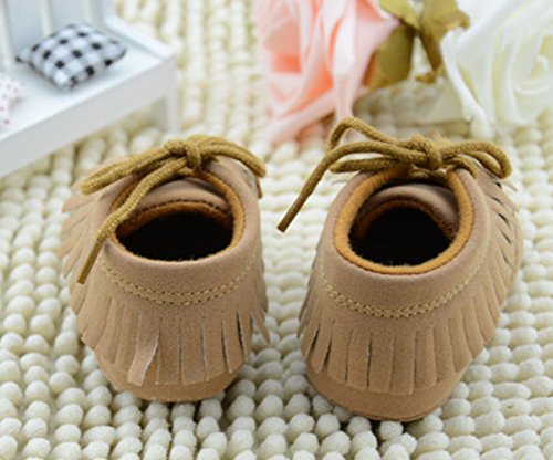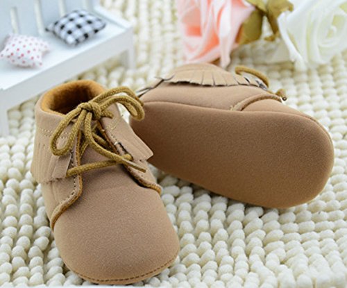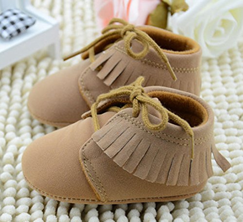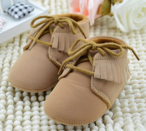 Ziweiba ベビーファーストシューズ 赤ちゃん 滑め防ぐ靴 室内履き ルームシューズ ソフトソール フリンジ飾り 紐止め 男の子 ブラウン (インソール11cm)