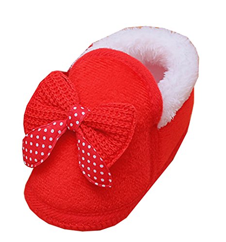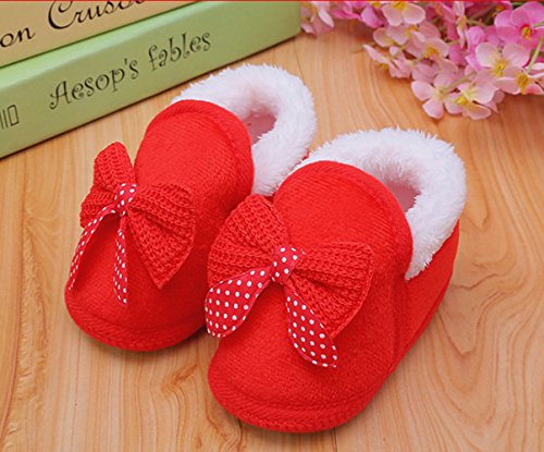 Ziweiba ベビーファーストシューズ 赤ちゃん 滑め防ぐ靴 室内履き ルームシューズ ソフトソール 暖か コットン リボン (インソール11.5cm, Cレッド)