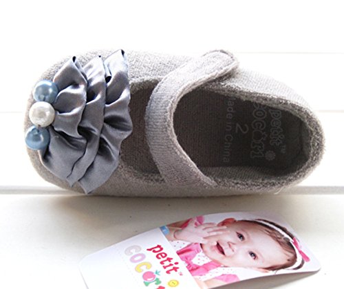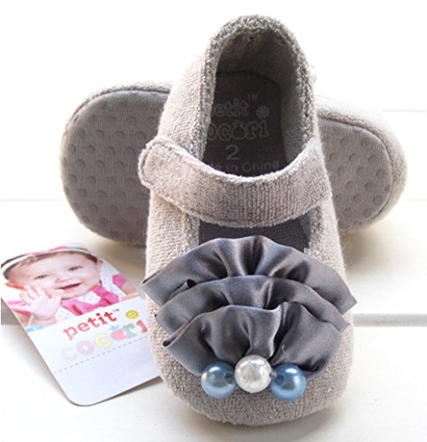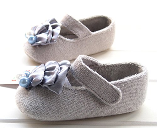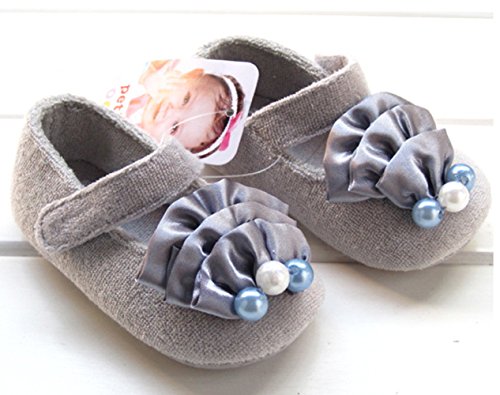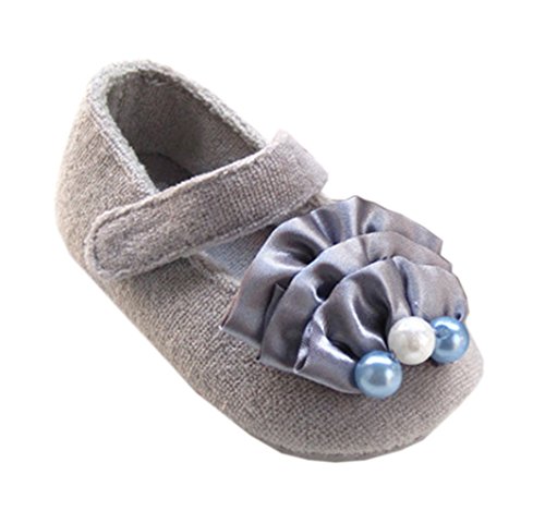 Ziweibaベビー赤ちゃん ファーストシューズ 柔らかい靴底 滑り止め キッズ 子供用歩行靴 出産お祝いプレゼント 女の子 フォーマル グレー (インソール11cm)