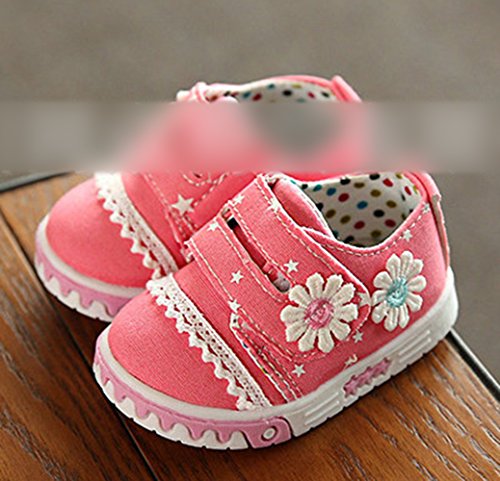 Ziweiba0-1歳 ベビー シューズ 子供靴 滑り防ぐ スニーカー ファーストシューズ 上履き 歩行靴 ズックシューズ 花レース飾り女の子 キッズ 赤ちゃん (インソール12cm, Bレッド)