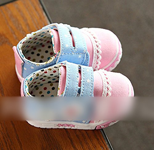 Ziweiba0-1歳 ベビー シューズ 子供靴 滑り防ぐ スニーカー ファーストシューズ 上履き 歩行靴 ズックシューズ 花レース飾り女の子 キッズ 赤ちゃん (インソール13cm, Aピンク)