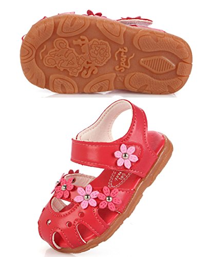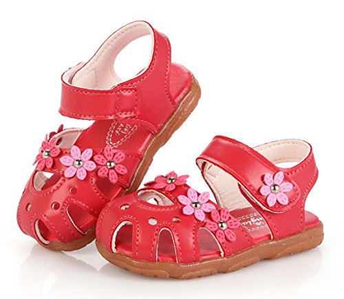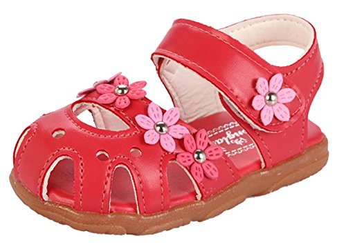 Ziweiba 女の子プリンセス シューズ ガールズサンダル 子供用歩行靴 女児夏靴 爪先保護 穴柄通気よく マジック留め 梅花モチーフ (14.5cm, A)