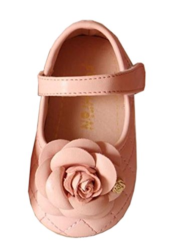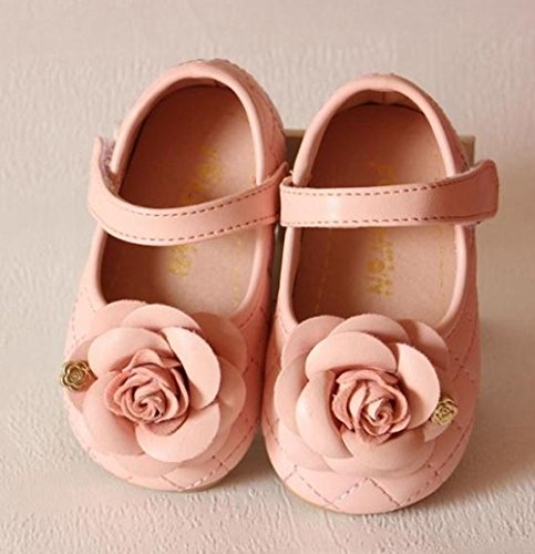 Ziweiba 0-2歳子供 キッズ靴 フラットシューズ 女の子PUレザー製 滑り止め 花フラワー 女児 (インナーソール13cm, Aピンク)