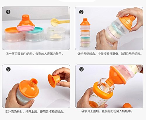 Ziweiba 携帯ミルクケース 離乳食保存兼用 離乳食ケース ベビー用品 赤ちゃん 幼児 パウダー 4層ミルクストック ミルクボックス 透明 (C)