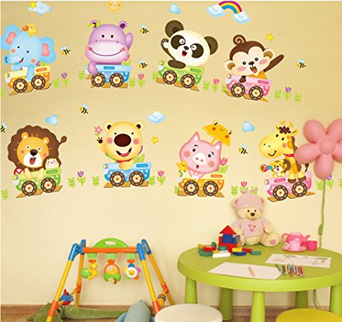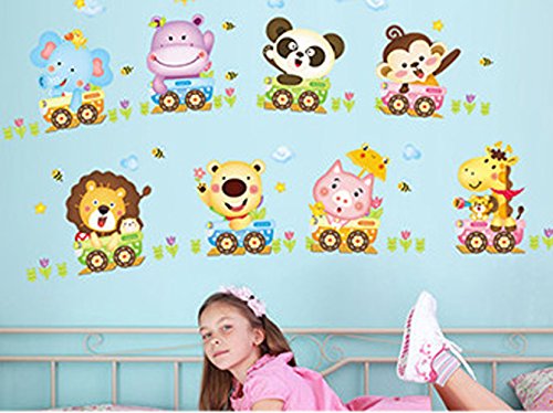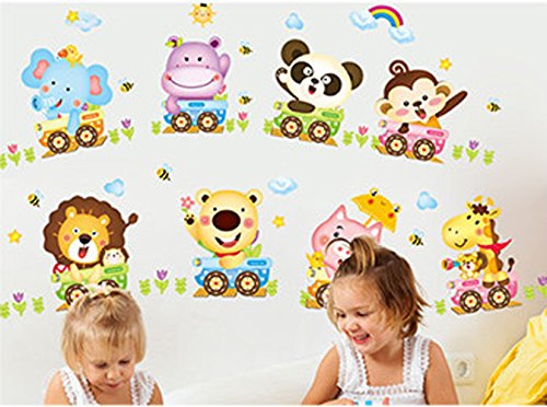 Ziweiba 取り外し可能 壁紙 シート 猫 カートゥーン動物柄 段階飾り 幼稚園の教室の配置 防水 (C小動物レスキュー)