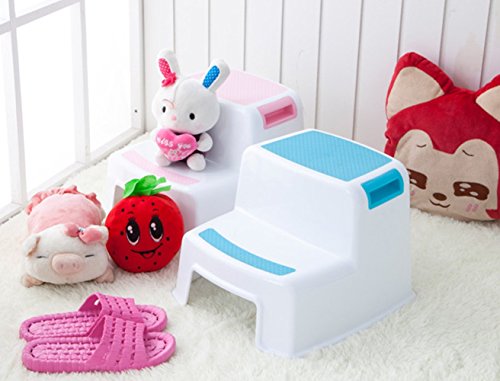 Ziweiba キッズ用 子供のスツール 厚い プラスチック スツール 踏み台 ステップ 2段 耐荷重80kg (Aブルー )