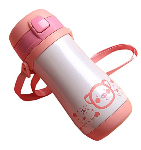 Ziweiba ストローボトル 保温 漏れ防止 水筒 プラスチック キッズ 通学 旅行 子供用 キャラクター 容量約400ml (Aレッド)
