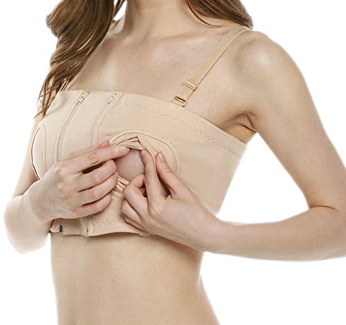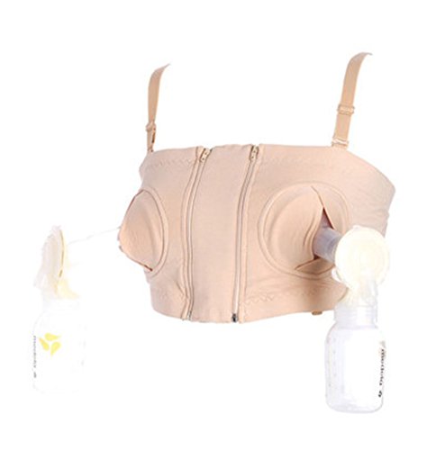 Ziweiba レディース 産後 授乳ブラ 哺乳ブラ ハンズフリー ブラ 搾乳器 (Bベージュ)