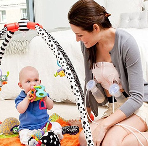 - 人にはとても見せられない姿ですが、電動搾乳器とともにつかうと搾乳の時間も両手がフリーになります。