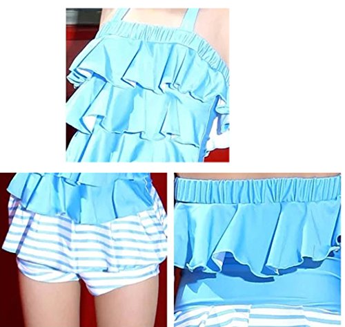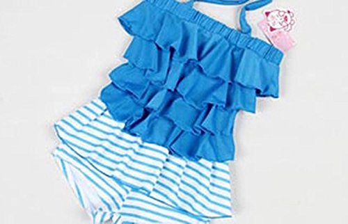 Ziweibaボーダー柄 フリルホルターネック水着 女の子 子供ワンピース キッズ スイムウェア ベビースイミング 連体式水着 (M, B)