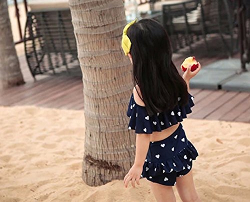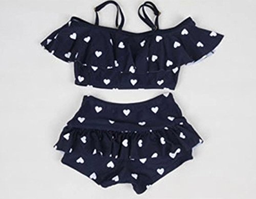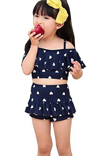 Ziweibaハート柄上着+スカートパンツ2点セットフリル水着 女の子 子供 キッズ スイムウェア ベビースイミング 分体式ビキニスカート (M, A)