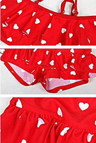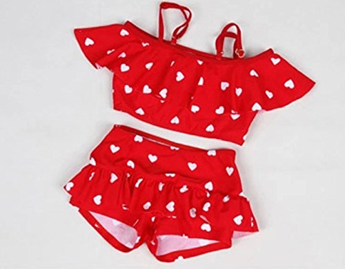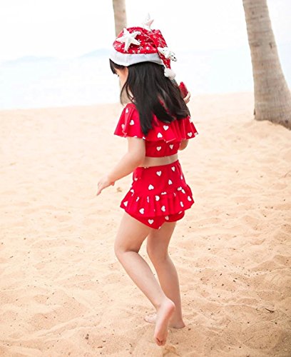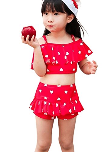 Ziweibaハート柄上着+スカートパンツ2点セットフリル水着 女の子 子供 キッズ スイムウェア ベビースイミング 分体式ビキニスカート (L, B)