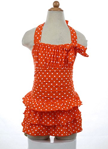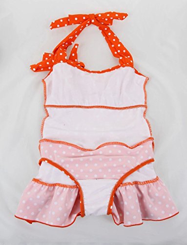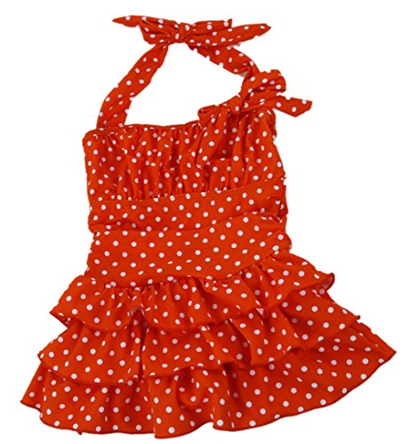 Ziweiba丸玉柄ワンピース水着 女の子 子供 キッズ スイムウェア ベビースイミング フリル連体式ビキニ リボン飾り ホルターネック (XL, D)