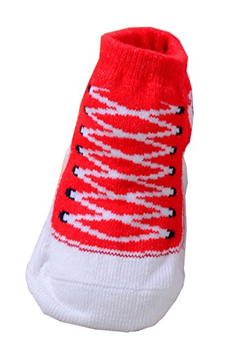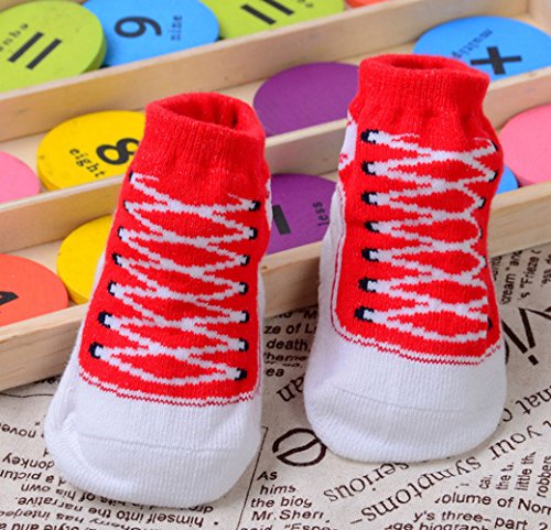 Ziweibaベビー靴下 新生児 ショートソックス 5足セット ボーダー柄 コットン キッズ 女の子 子供 靴下 滑り止め (Eレッド)