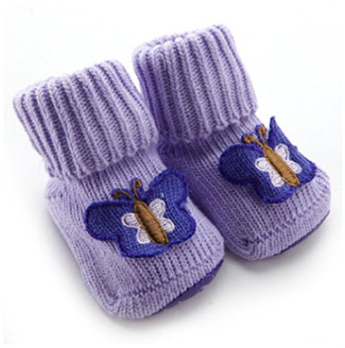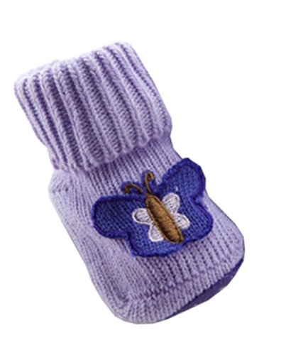 Ziweiba 赤ちゃん 靴下 コットン 女の子 新生児 ベビーソックス 滑り止め付き 男の子 出産お祝い (S=0-6ヶ月,底面9cm, C紫色の蝶結び)