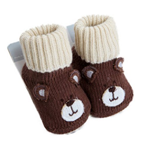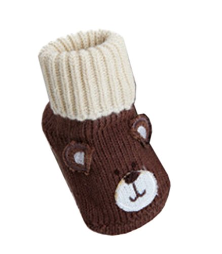 Ziweiba 赤ちゃん 靴下 コットン 女の子 新生児 ベビーソックス 滑り止め付き 男の子 出産お祝い (S=0-6ヶ月,底面9cm, Aコーヒー色の熊)