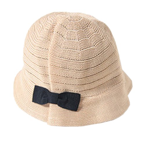 Ziweiba 女の子 日よけ帽 蝶結び付き 春夏 折り畳み ハット ビーチ帽子 編み物 ハット 幼児麦わら帽子 (D ベージュ)