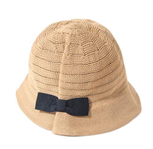 Ziweiba 女の子 日よけ帽 蝶結び付き 春夏 折り畳み ハット ビーチ帽子 編み物 ハット 幼児麦わら帽子 (Aうすコーヒー色)