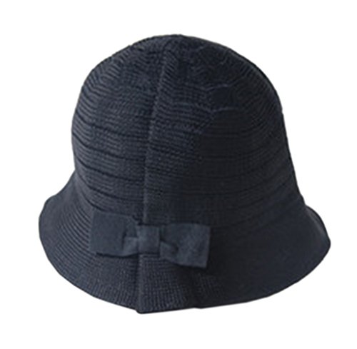 Ziweiba 女の子 日よけ帽 蝶結び付き 春夏 折り畳み ハット ビーチ帽子 編み物 ハット 幼児麦わら帽子 ( Bブラック )
