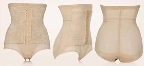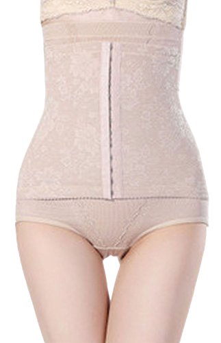 Ziweiba夏お腹引締め ハイウエスト シェイプアップ ショーツ 補正 下着 女性用くびれライン矯正ガードル 優雅花柄 ボタン付き ヒップを引き上げ (L, B肌色)