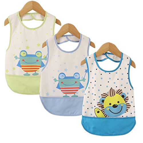 - ベビー食事用エプロン 防水です。男の子用,女の子用共3点セット。対象年齢0.5~4歳