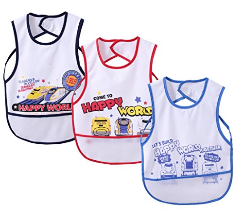 - ベビー食事用エプロン 防水です。男の子用,女の子用共3点セット。対象年齢0.5~4歳