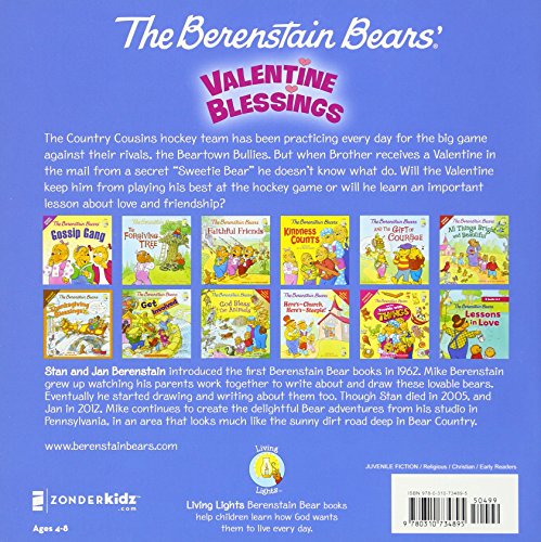 In The Berenstain Bears Valentine Blessings hockey-playing Brother Bear finds himself in a new situation . he has a secret admirer! When Sister sees the Valentine card from Sweetie Bear, she cannot resist teasing Brother. But Papa steps in to save the day, reminding the cubs that all love comes from God who has a plan for each of us.