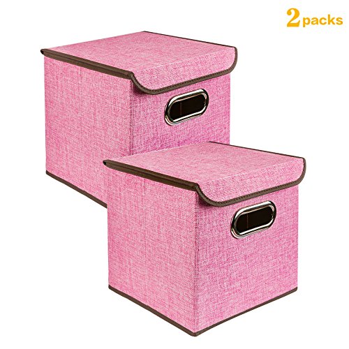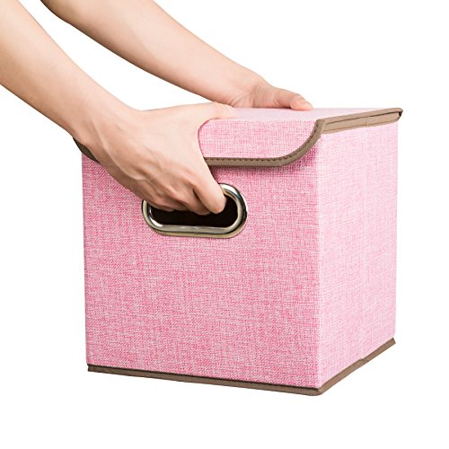 zonyon正方形ストレージコンテナ、折りたたみ可能なバスケット、キューブビンストレージ、クローゼットオーガナイザー、保育園Hamper forキッド部屋、男の子、女の子、playingroom、オフィス、リビングルーム、10 " x10 " x10インチ、2パック、ピンク