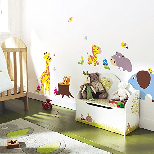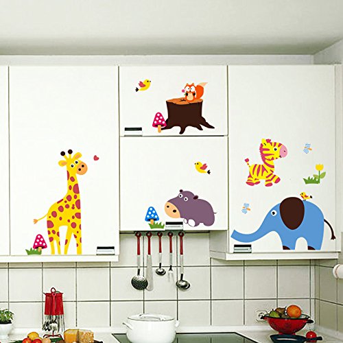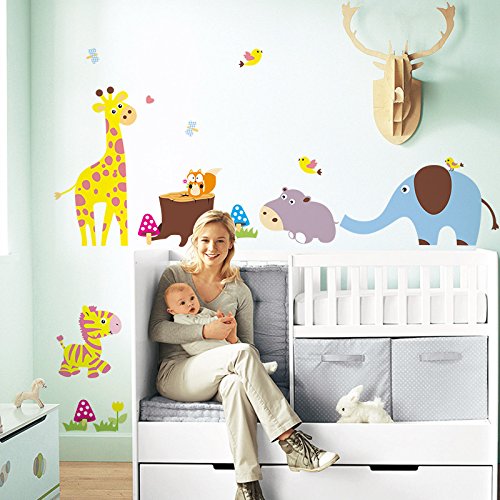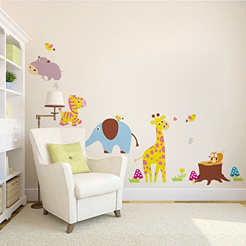 ZooArts 可愛いな動物 キリン 象 ゼブラ カバ キノコ 自然 子供部屋 幼稚園 ウォールステッカー シール ウォールペーパー 環境保護 おしゃれ はがせる インテリア雑貨 賃貸OK