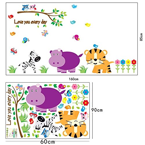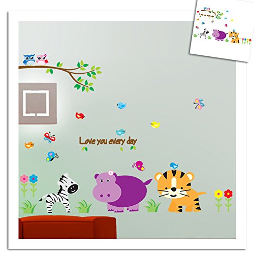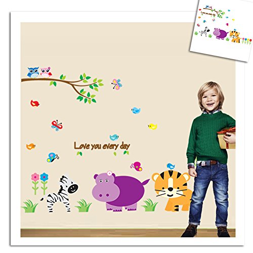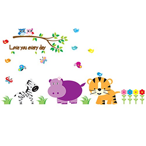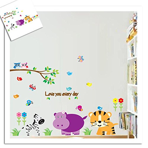ZooArts 可愛いな動物 ふくろう カバ ゼブラ タイガー 綺麗な蝶々 子供人気 子供部屋 幼稚園 ウォールステッカー シール ウォールペーパー 環境保護 おしゃれ はがせる インテリア雑貨 賃貸OK