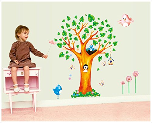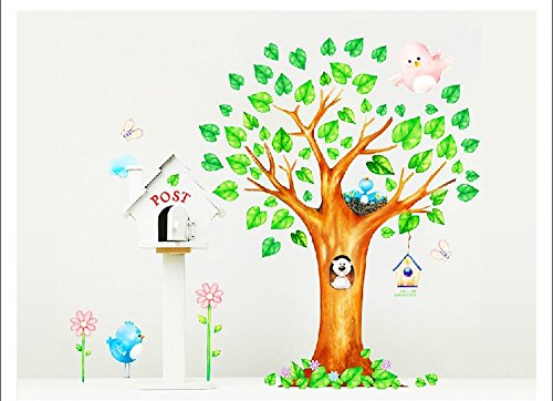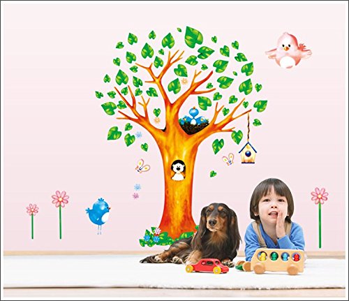 ZooArts ウォールステッカー ウォールシール ウォールペーパー 綺麗な木 動物の家 可愛いな動物 青葉 鳥かご 自然 子供部屋 幼稚園 生活防水 環境保護 おしゃれ はがせる インテリア雑貨 賃貸OK