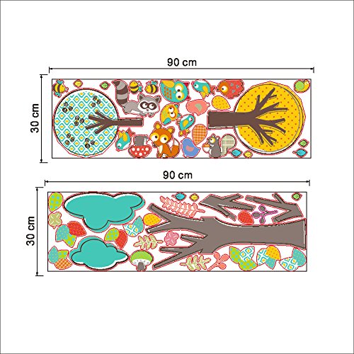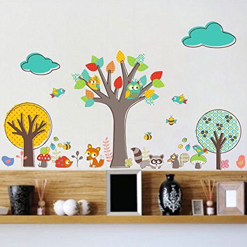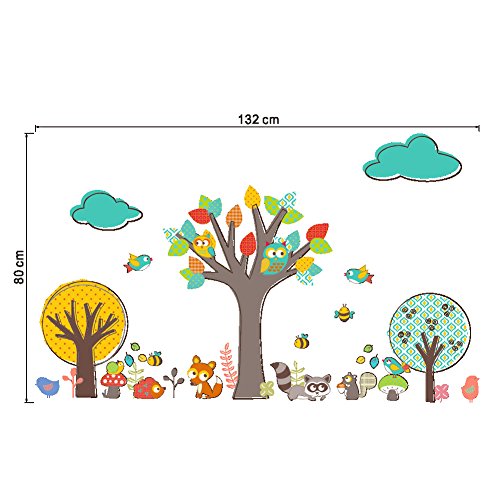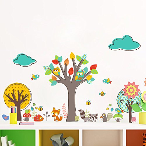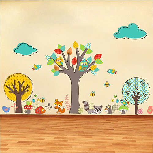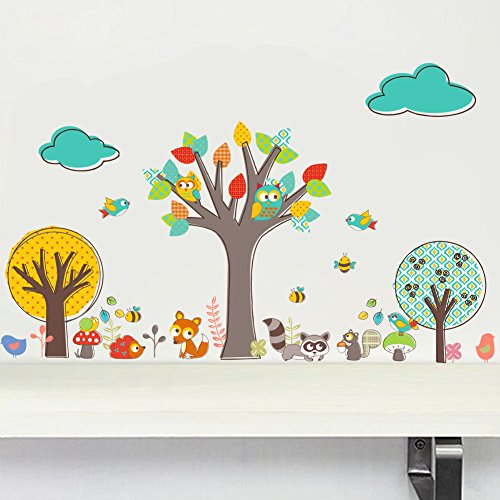 ZooArts 可愛いな動物 ふくろう 小鳥 ミツバチ リス 子狐 アライグマ 綺麗な木 子供部屋 幼稚園 保育所 ウォールステッカー シール ウォールペーパー 環境保護 おしゃれ はがせる インテリア雑貨 賃貸OK