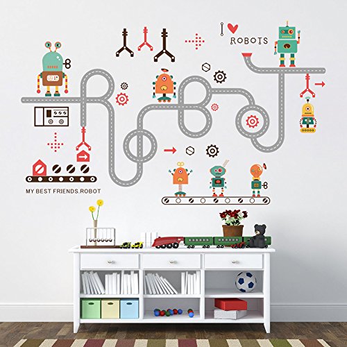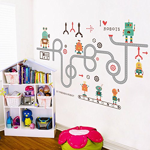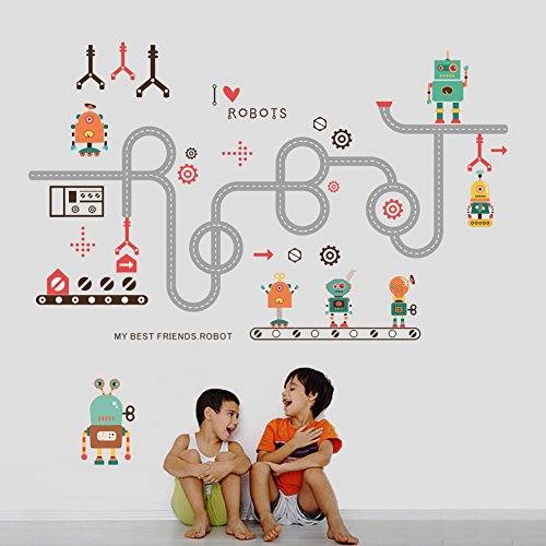 ZooArts 可愛いロボット ロボットの工場 ギヤ 子供部屋 幼稚園 保育所 ウォールステッカー シール ウォールペーパー 環境保護 おしゃれ はがせる インテリア雑貨 賃貸OK