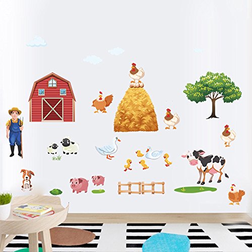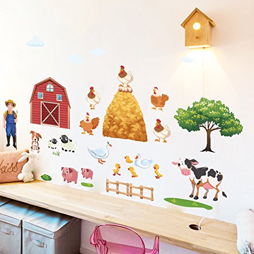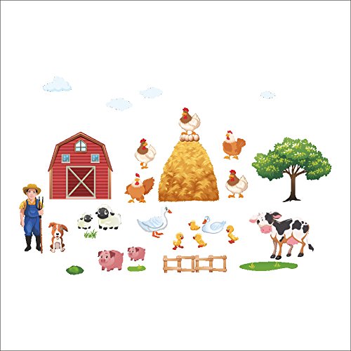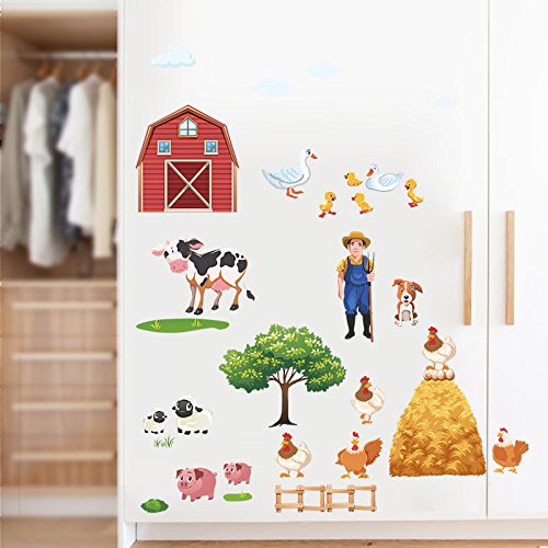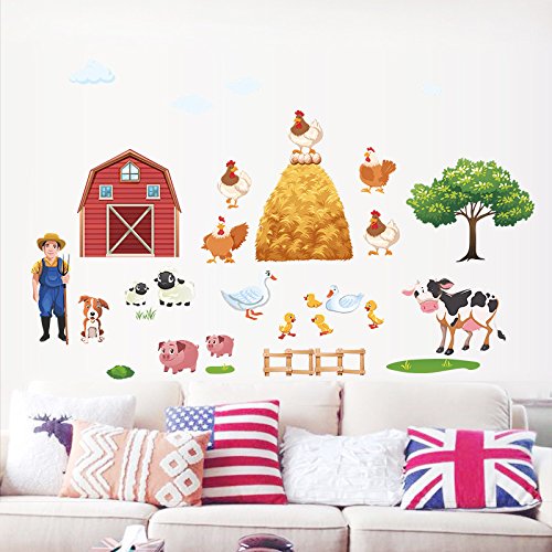 ZooArts ウォールステッカー シール ウォールペーパー 農場 農夫 乳牛 家禽 可愛い ワンちゃん 農場の生活 自然 子供部屋 幼稚園 保育所 環境保護 おしゃれ はがせる インテリア雑貨 賃貸OK