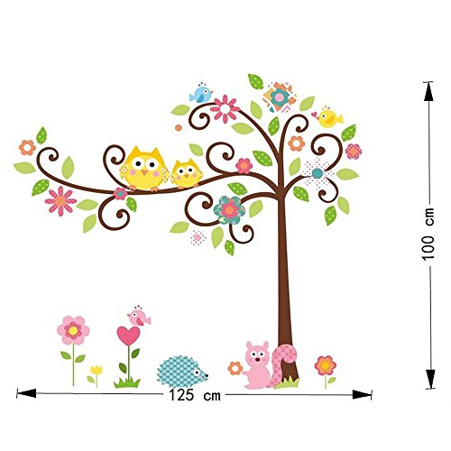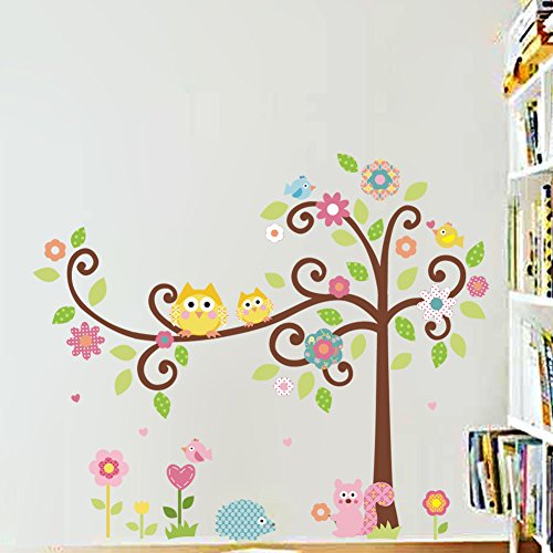ZooArts ウォールステッカー 壁の装飾 ウォールペーパー 可愛いふくろう 小鳥 リス ハリネズミ 綺麗な花 木 自然 子供部屋 幼稚園 保育所 環境保護 おしゃれ はがせる インテリア雑貨 賃貸OK