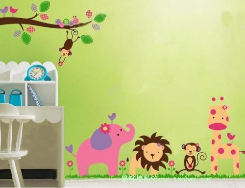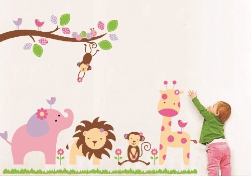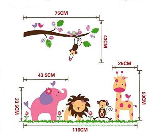 ZooArts ウォールステッカー 可愛い動物 小猿 キリン ライオン 象 綺麗 木の枝 自然 子供部屋 幼稚園 保育所 壁紙 シール 壁の装飾 環境保護 おしゃれ はがせる インテリア雑貨 賃貸OK