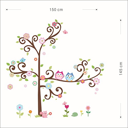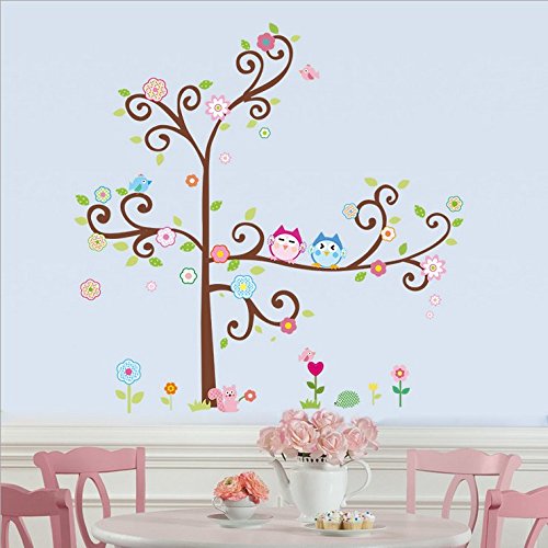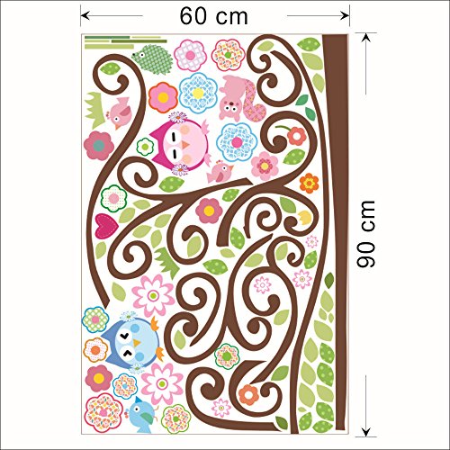 ZooArts ウォールステッカー 壁紙 シール 可愛いふくろう リス 綺麗な木 花 自然 子供部屋 幼稚園 保育所 壁の装飾 環境保護 おしゃれ はがせる インテリア雑貨 賃貸OK