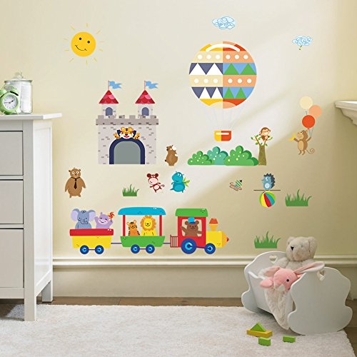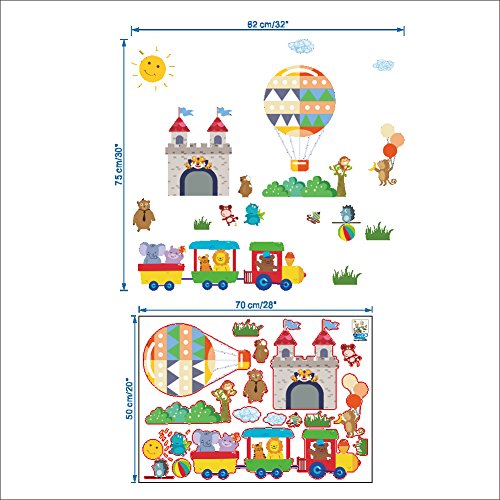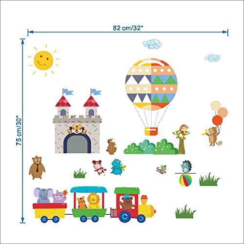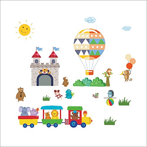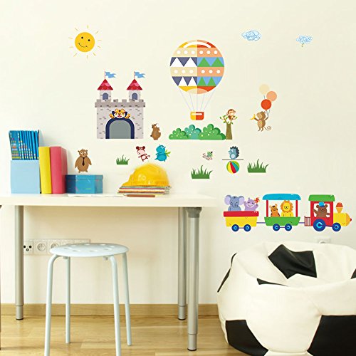 ZooArts ウォールステッカー 動物の城 熱気球 小さい汽車 可愛い動物 遊び 子供部屋 幼稚園 保育所 壁紙 シール 壁の装飾 環境保護 おしゃれ はがせる インテリア雑貨 賃貸OK