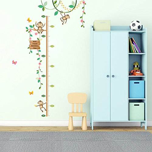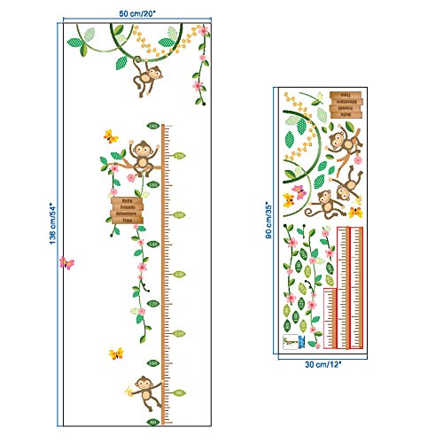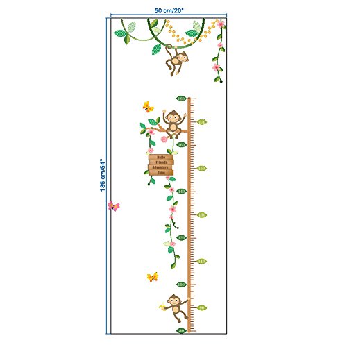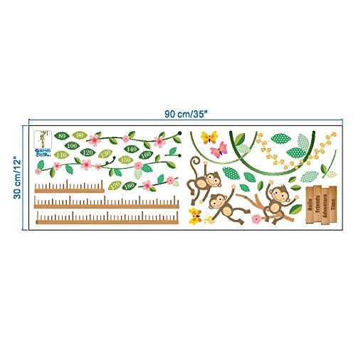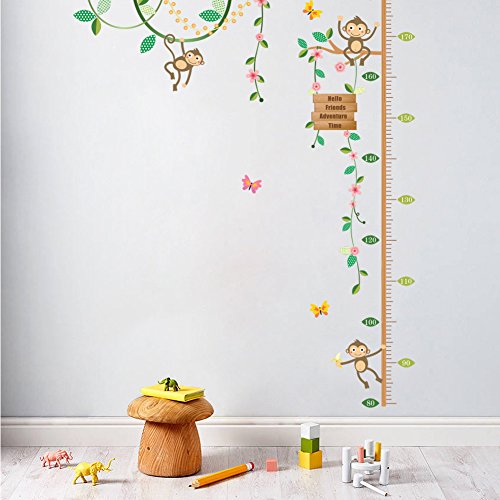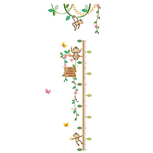 ZooArts ウォールステッカー 子供身長計 可愛い 小猿 花の藤 蝶々 成長記録 ベビールーム 子供部屋 幼稚園 壁紙 シール 壁の装飾 環境保護 はがせる インテリア雑貨 賃貸OK