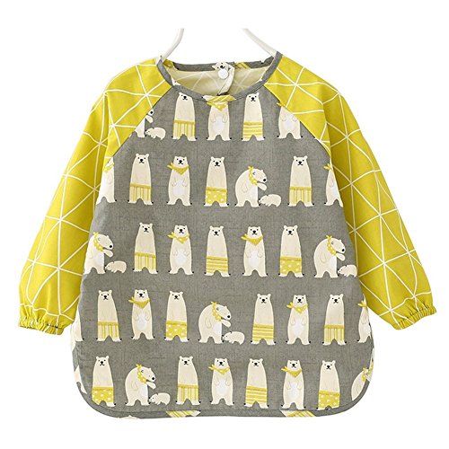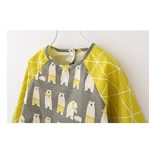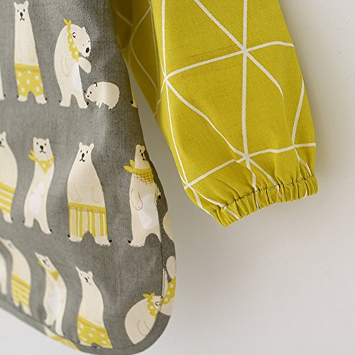ZooArts ベビー 子供用 食事用エプロン スモック 可愛い動物柄 長袖 防水 洗いやすい お絵かき用 泥遊び用 (ホッキョクグマ, 90(2-3歳))