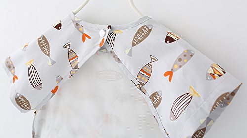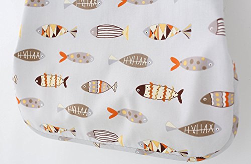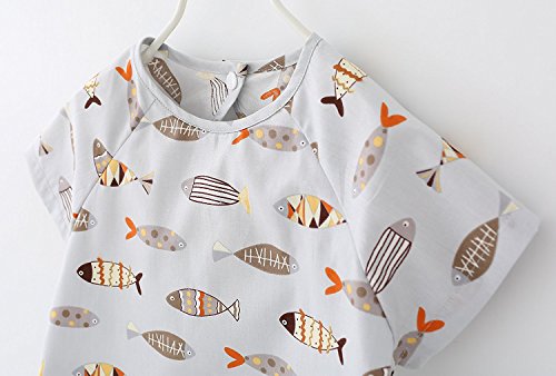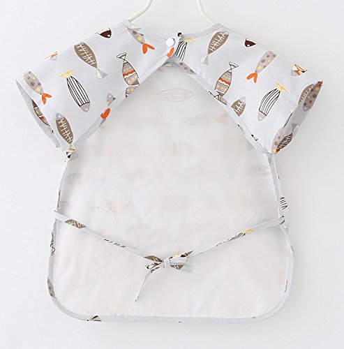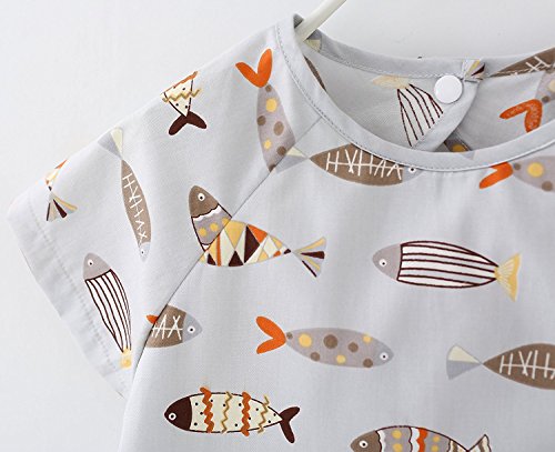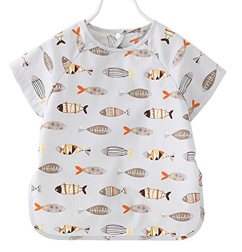 ZooArts ベビー 子供用 お食事エプロン スモック 可愛い動物柄 半袖 夏用 防水 洗いやすい 離乳食 お絵かき用 泥遊び用 (小魚, 90(2-3歳))