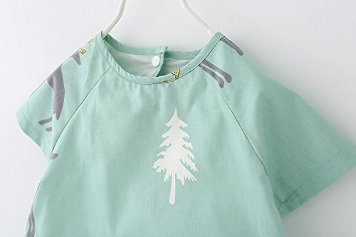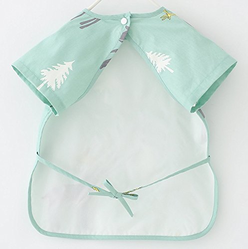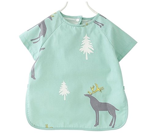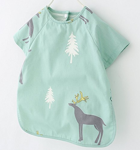 ZooArts ベビー 子供用 お食事エプロン スモック 可愛い動物柄 半袖 夏用 防水 洗いやすい 離乳食 お絵かき用 泥遊び用 (森の鹿, 90(2-3歳))