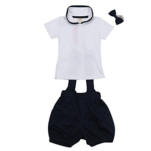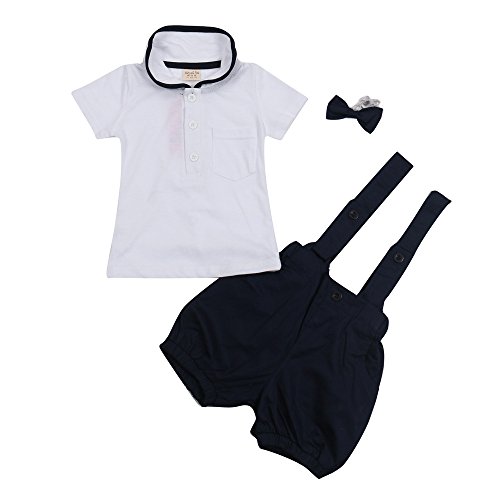 ZooArts ベビー服 ベビーフォーマル ロンパース スーツ オーバーオール 半袖 男の子 子供服 紳士服 幼児 蝶ネクタイ 上下セット サスペンダーパンツ 撮影 道具 記念日 誕生日 綿 カッコイイ (80(12-18月))