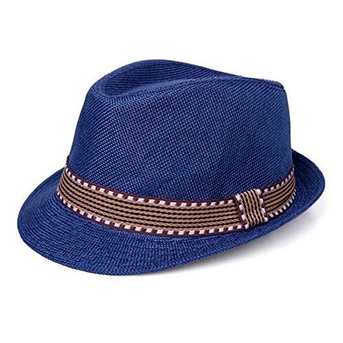 ZooArts キッズ ストローハット 麦わら帽子 男の子 女の子 子供用 中折れ帽子 撮影 道具 記念日 誕生日 七五三 おしゃれ (ブルー)