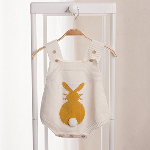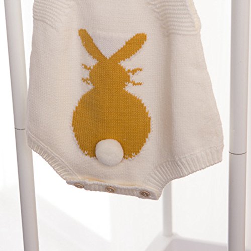 ZooArts ベビー服 ロンパース ニット 可愛い ウサギ ふわふわ しっぽ 新生児サイズ キャミソール 女の子 子供服 袖なし ボディスーツ 赤ちゃん 夏用 秋用 あんよしはじめる (73(6-12ヶ月), ホワイト)