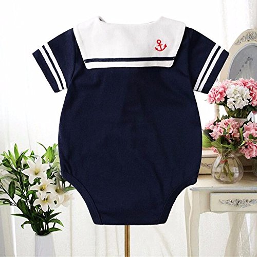 ZooArts ベビー服 セーラー服 ロンパース 新生児サイズ 半袖 股下全開 男の子 女の子 男女兼用 子供服 赤ちゃん 撮影 道具 記念日 誕生日 綿 可愛い ブルー (60(0-6ヶ月))