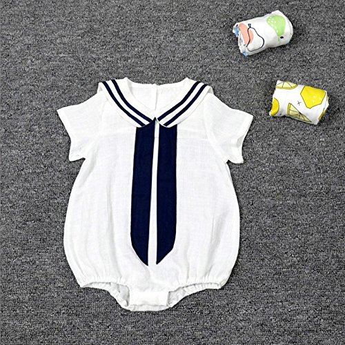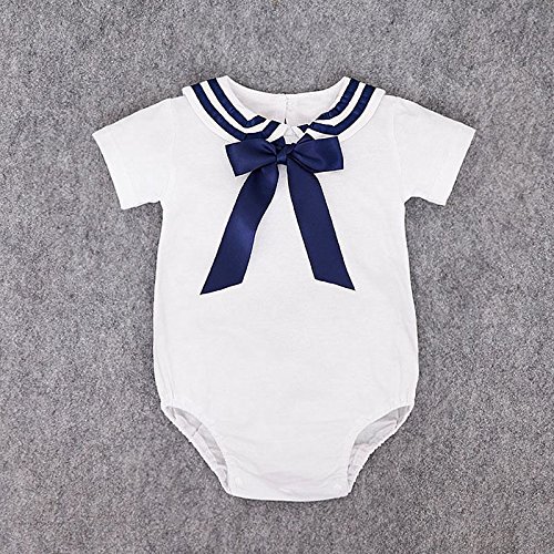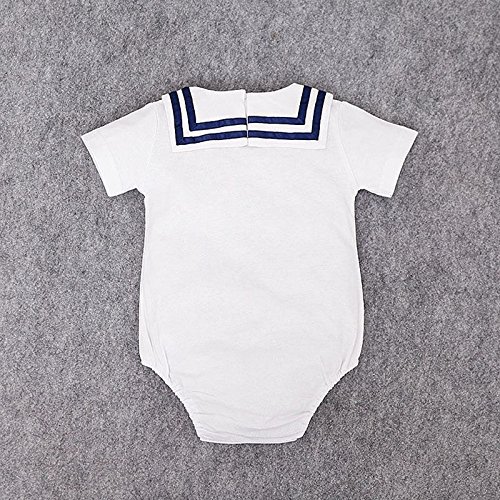 ZooArts ベビー服 セーラー服 蝶結び ロンパース 新生児サイズ ニット 半袖 股下全開 男の子 女の子 男女兼用 子供服 赤ちゃん 普着 撮影 道具 記念日 誕生日 可愛い (M(3-6ヶ月))