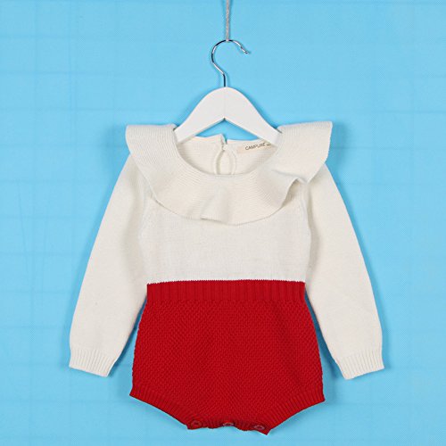 ZooArts ベビー服 ロンパース ニット 新生児サイズ 女の子 子供服 長袖 カバーオール ワンピース 赤ちゃん 夏用 秋用 あんよしはじめる ホワイト レッド (70(7-9ヶ月))