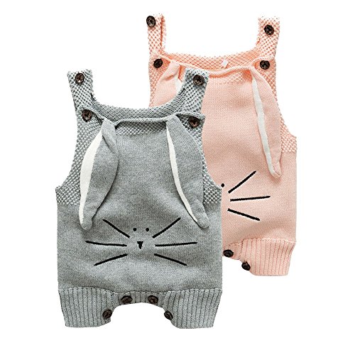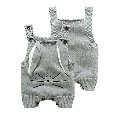 ZooArts ベビー服 ロンパース ニット コットン 新生児サイズ かわいい 兎の耳 女の子 男の子 子供服 カバーオール ワンピース 赤ちゃん服 夏用 秋用 あんよしはじめる (80(9-12ヶ月), グレー)