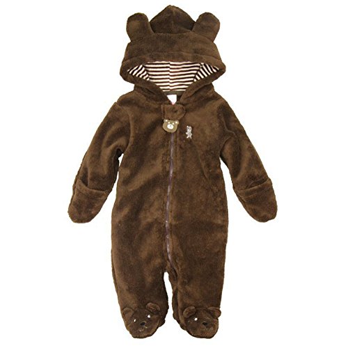 ZooArts ベビー服 ロンパース かわいい耳付き 小熊 新生児 男の子 女の子 赤ちゃん服 長袖 前開き カバーオール 満月/出産祝い/プレゼント 春用 秋用 冬用 ふわふわ 防寒 着ぐるみ あんよしはじめる (3M, ブラウン)